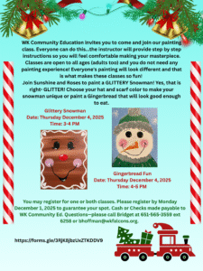 Wabasha-Kellogg Community Education is committed to fostering growth and curiosity in all children through clubs, activities, enrichment classes, and child care.